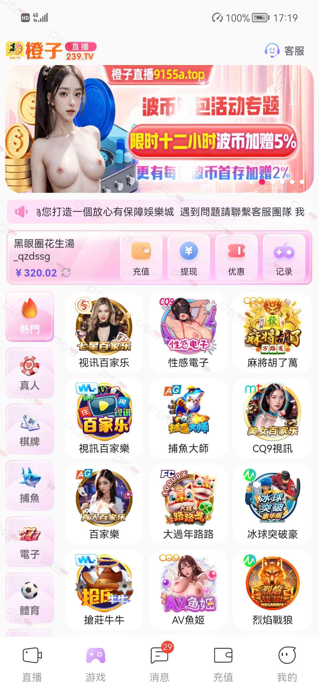 239.tv橙子直播,送了28打到320。就想试试提现,果断拉黑账户。笑死了