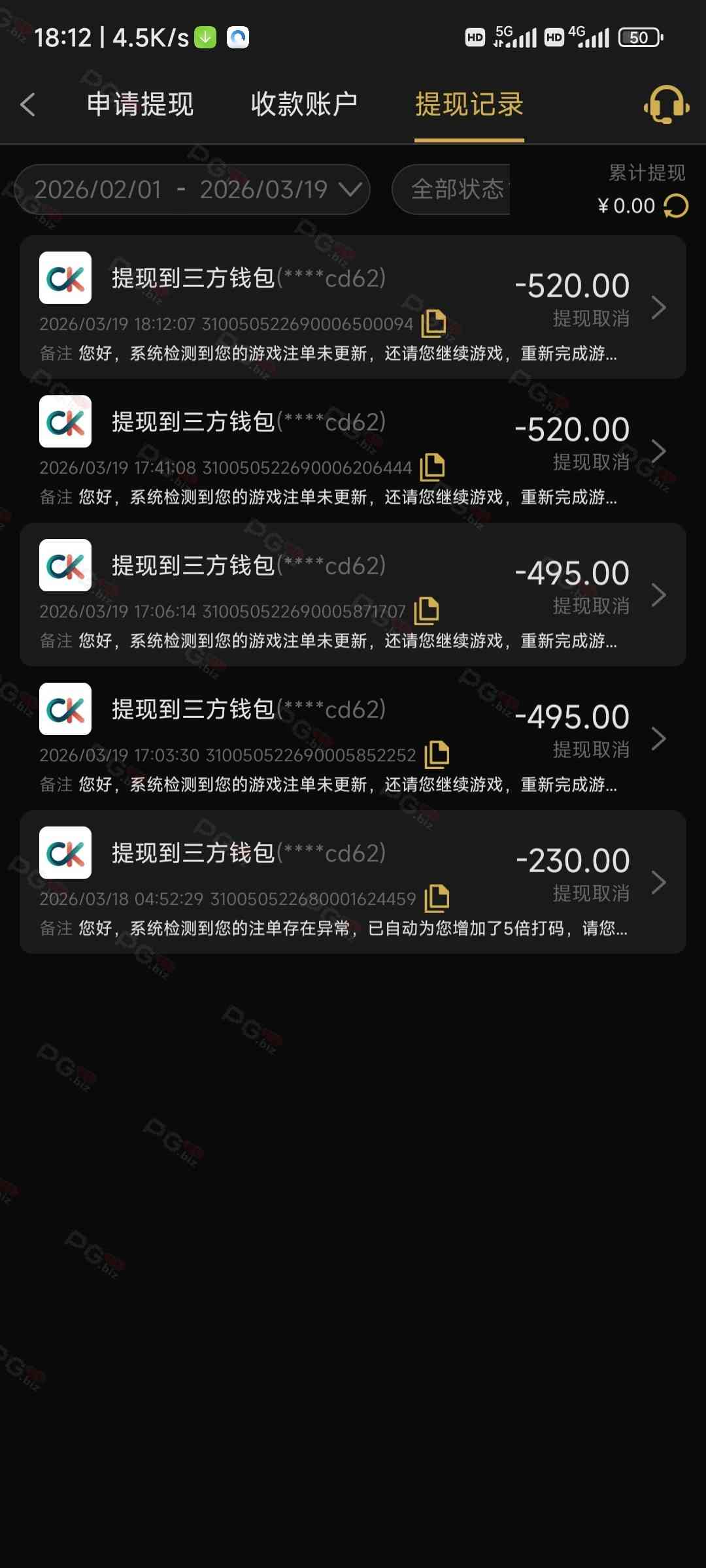 充值300提500打了3000流水,提现都是直接秒取消,只进不出黑台注意