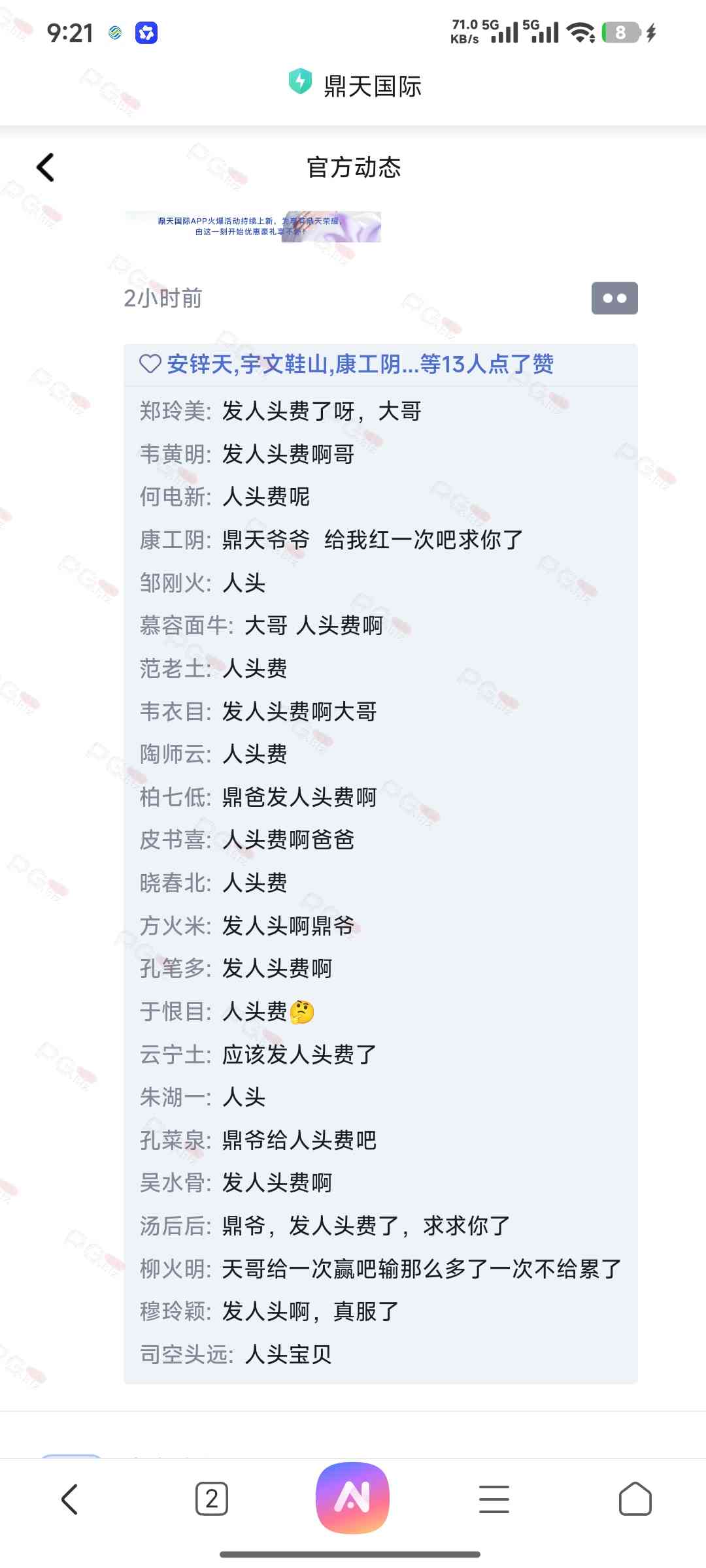 我鼎天人头费到了