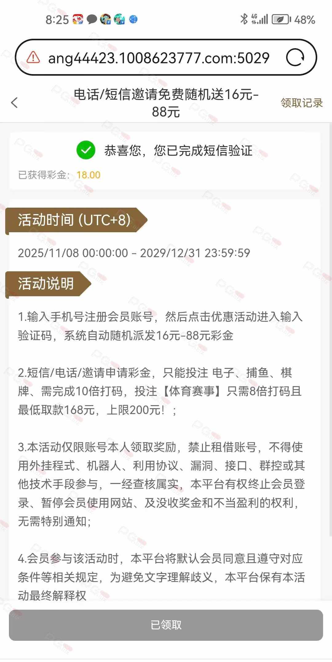 活动开始后绑定,领取不到