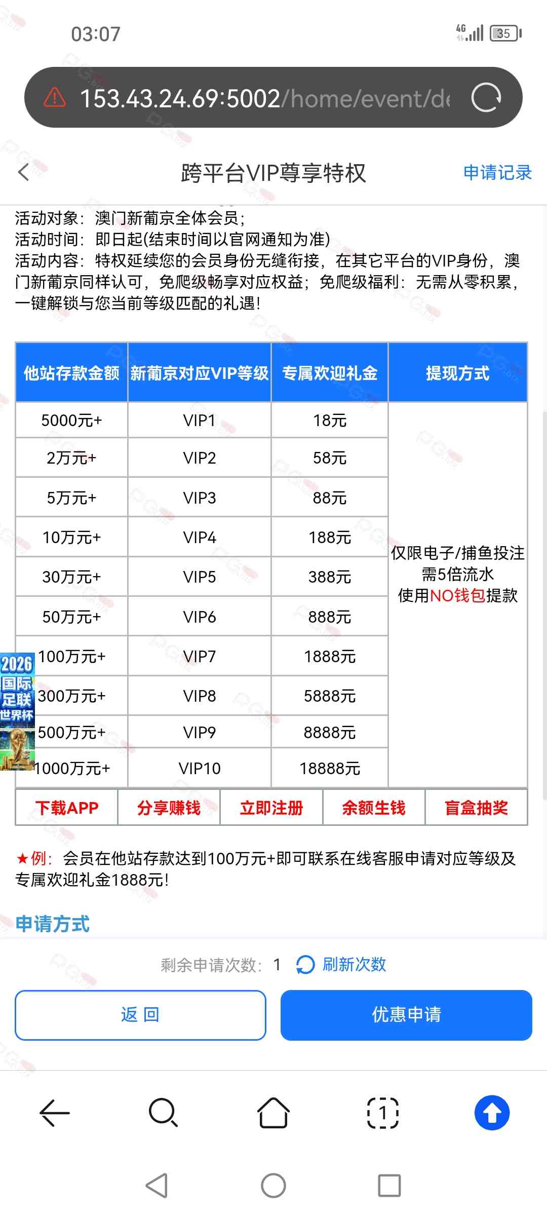 这样的台子 等你搞好了去申请 客服一句话 你下IP多个账号 有个金沙注册年限彩金也是这样的套路叫我充值300充后就是IP多账号不给了 这些都是套路