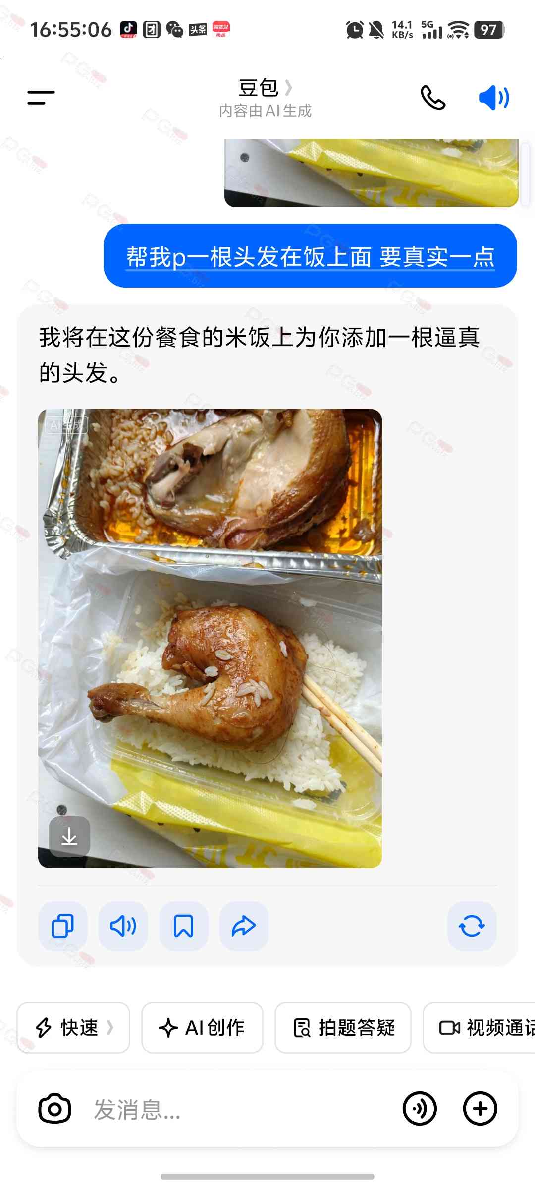 美团点外卖带有放心吃的拍一张照片让豆包帮忙p一下上传就赔了二十多
