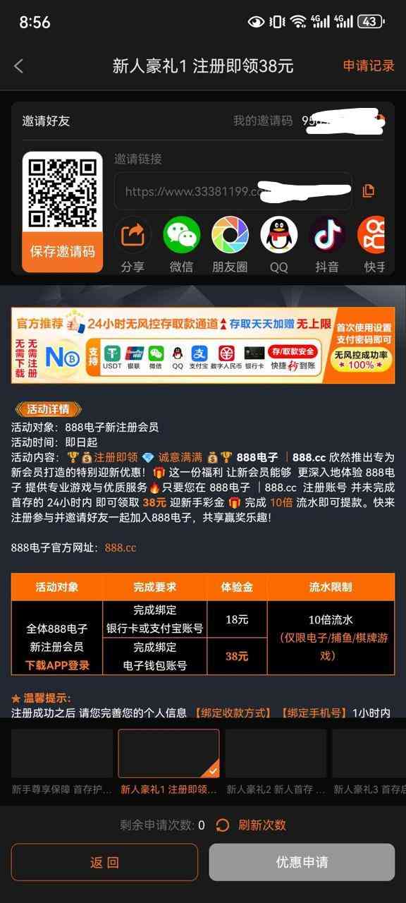 888电子短信特邀。注册绑定电子钱包优惠页面自助申请送38。出款情况自测。