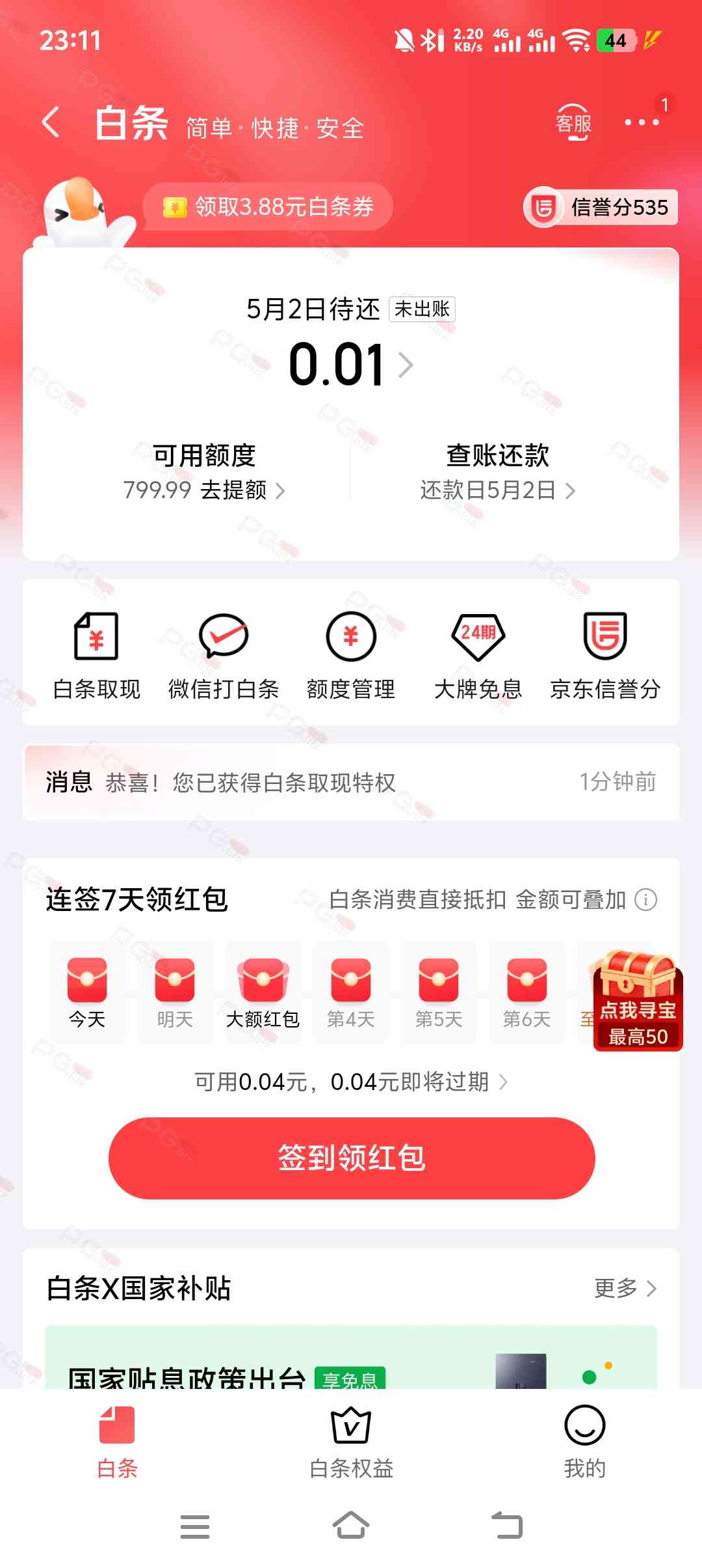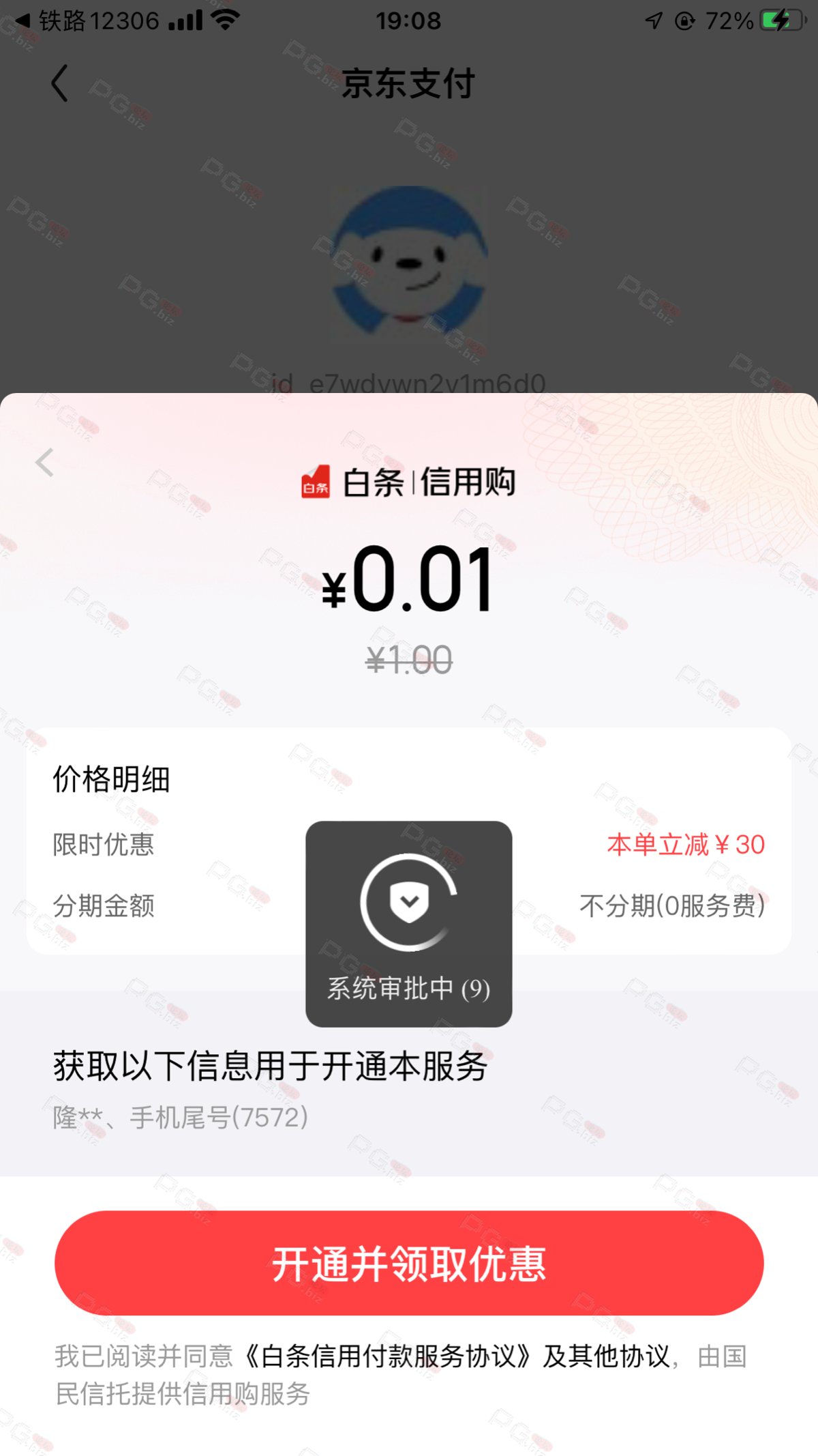 先下载12306购买一块钱火车票,选泰山站到上高镇站,没票的选后面的日期,选好了点付款用京东支付选白条,会显示1-0.99